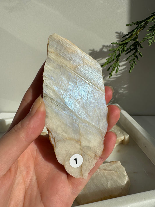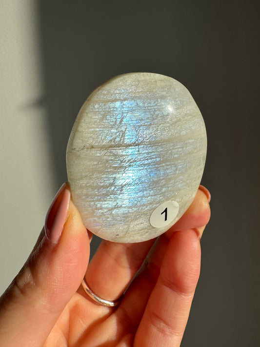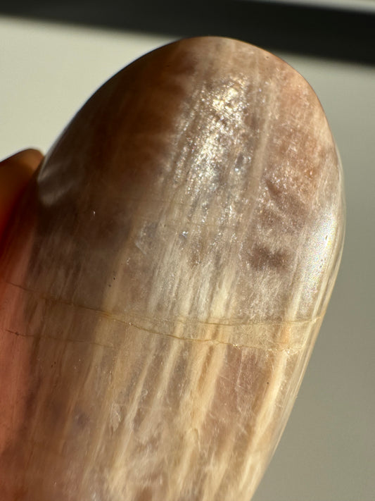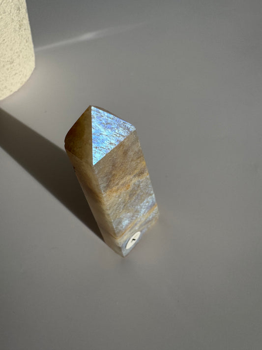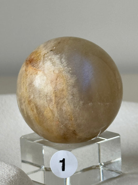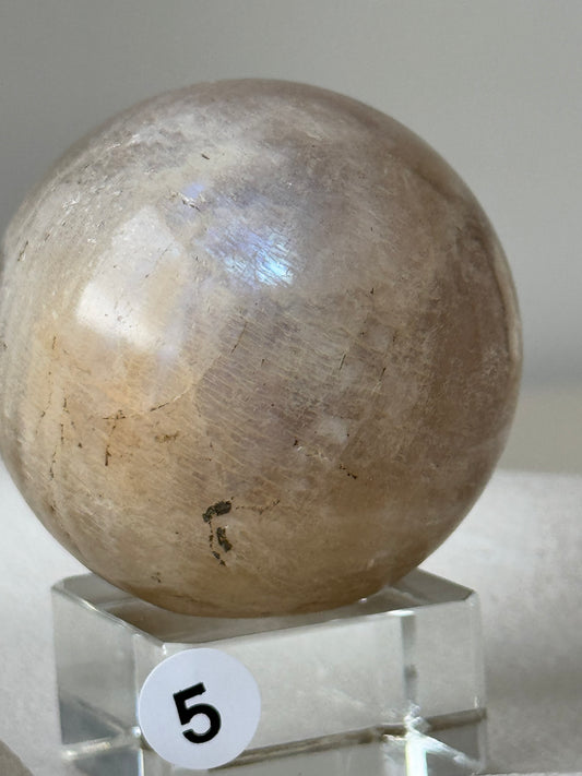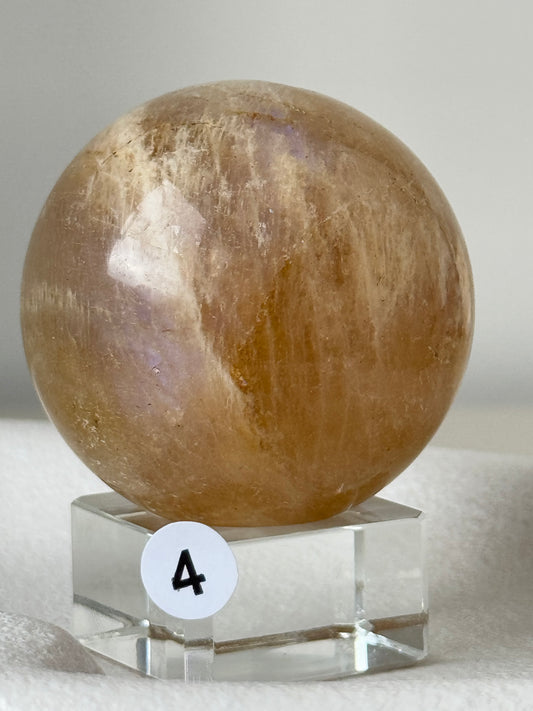 Large Moonstone Moon on Stand golden and blue flash (video)