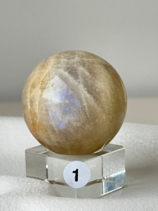 Large Moonstone Moon on Stand golden and blue flash (video)