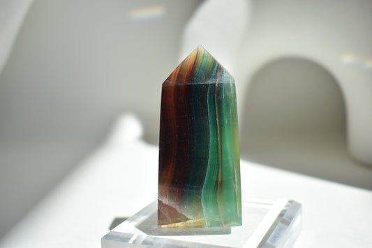 Green Banded Fluorite Point