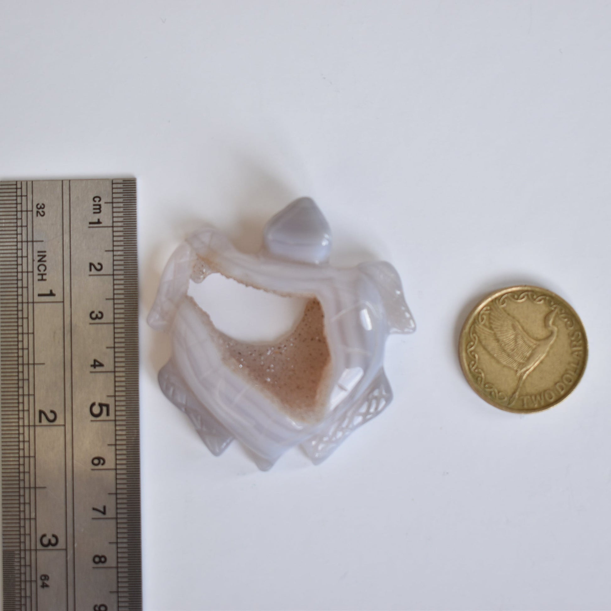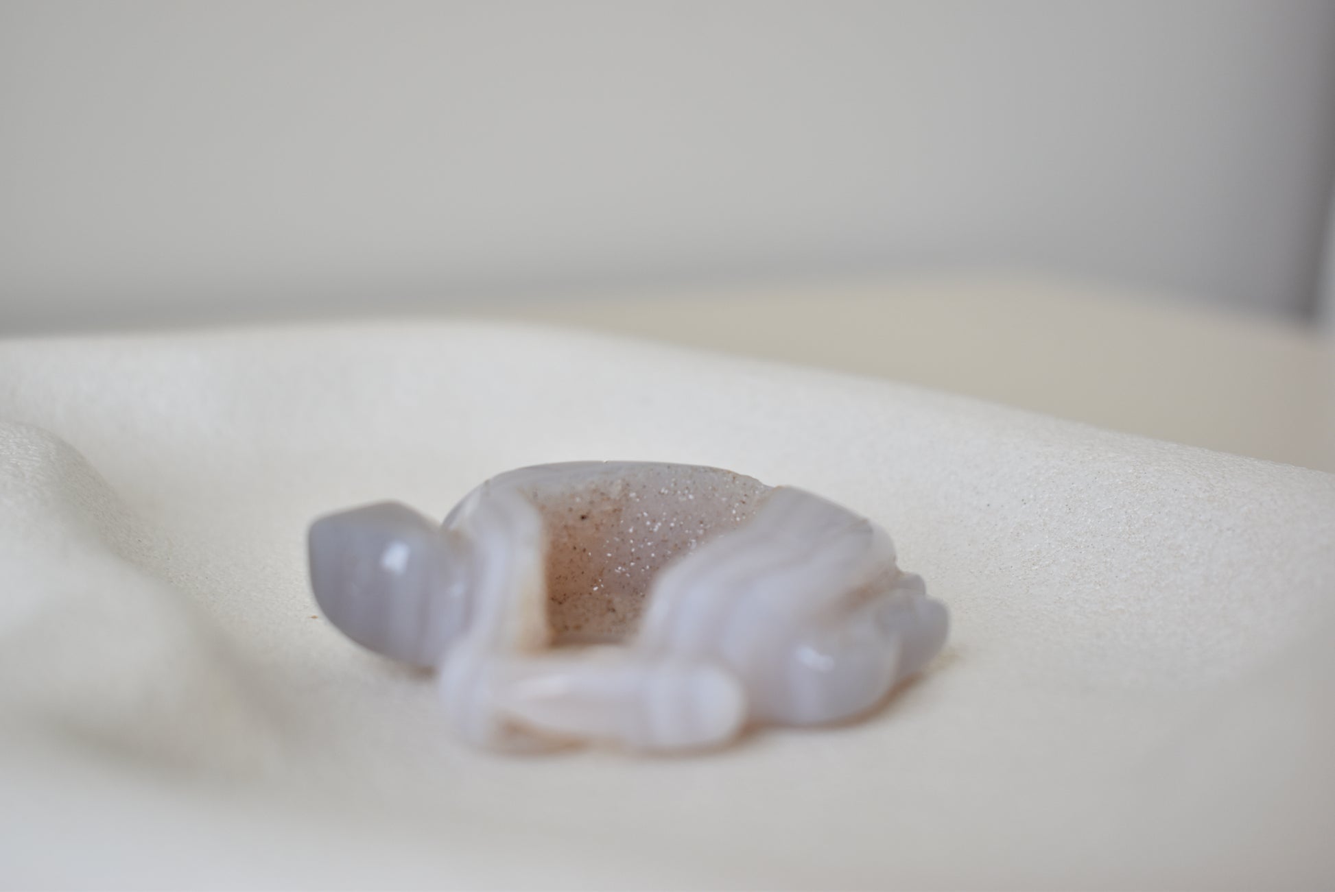Agate Druzy Turtle is a delightful combination of artistry and natural beauty, where the smooth agate forms the body of the turtle, and the druzy effect adds a sparkling, crystalline layer to its design. These pieces are popular for their symbolism and unique charm.