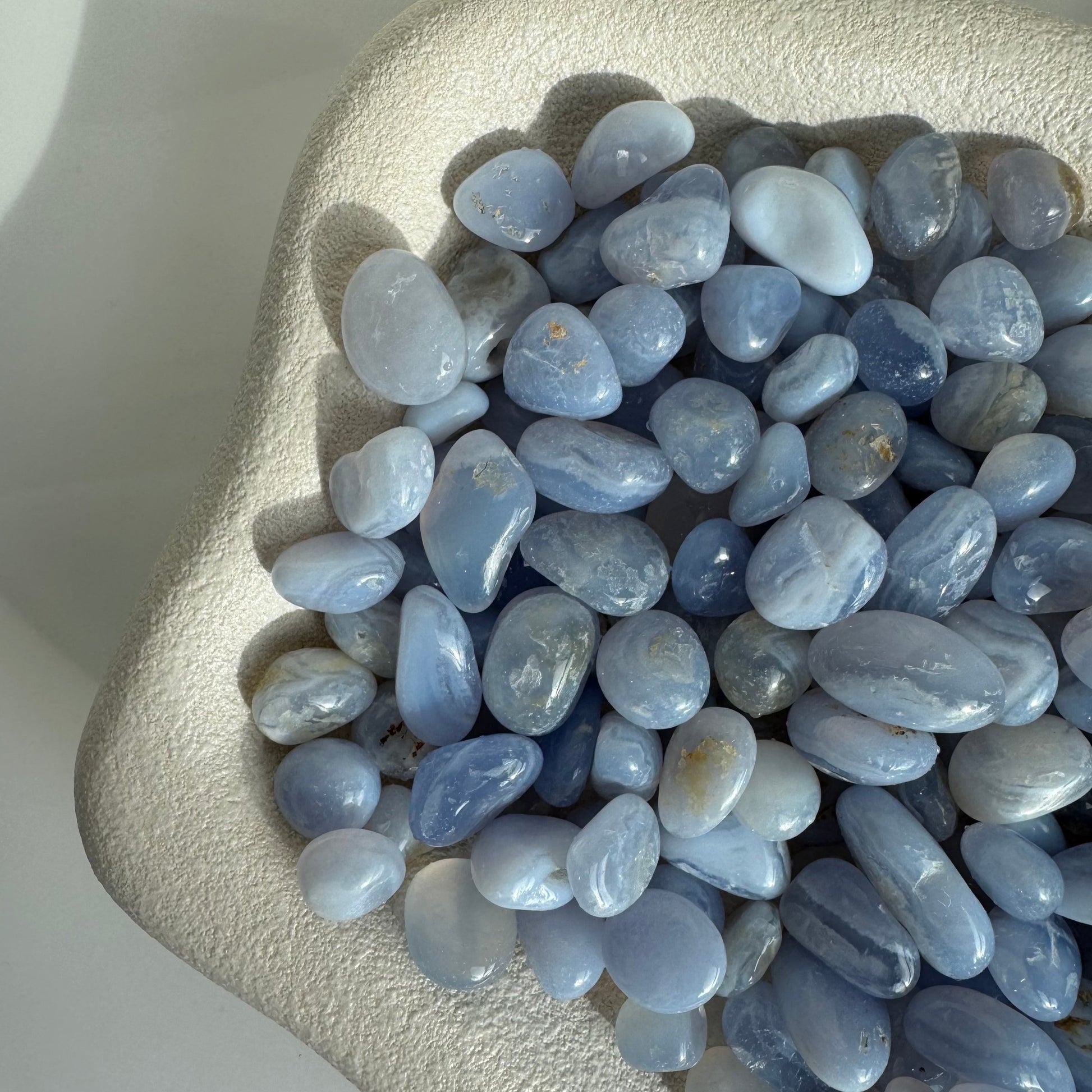 Blue Lace Agate is a stone of tranquility and grace. Its soft, soothing energy is ideal for fostering calm and easing stress. This gentle crystal enhances communication, encouraging expression of thoughts and feelings with clarity and confidence. It's especially beneficial for those who need to improve their communication skills, both in personal and professional settings. Blue Lace Agate is also known for its ability to inspire trust and loyalty, making it a wonderful companion for fostering healthy relationships.