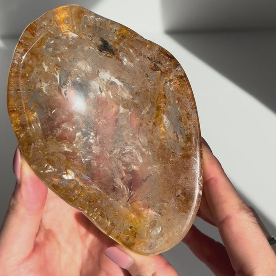 This Golden Healer bowl is a true one-of-a-kind. Carved from high-grade quartz with rich golden tones flowing through the body, it carries a soft, healing energy, warm like sunlight and gentle like touch.