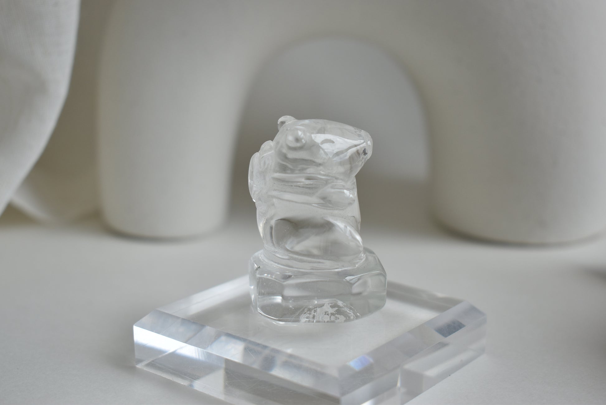 Hand-carved with love and attention to detail, this stunning Capybara brings clarity and charm to any space. Known as the "Master Healer," Clear Quartz amplifies energy and thought, helping to balance and revitalize your spirit.