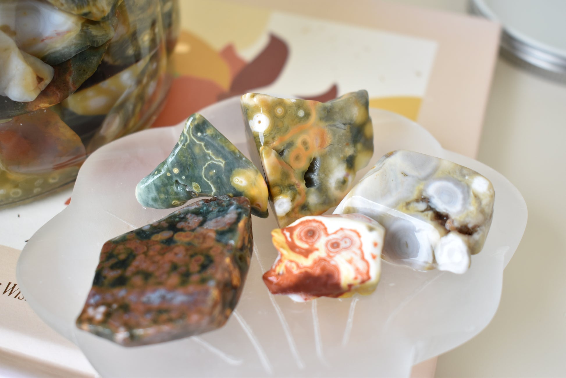 This beautiful soft stone is perfect for calming anxious feelings, soothing emotions, and promoting healing. Connected to both the Third Eye and Throat Chakras, Ocean Jasper aids in improving communication and deepening your connection with intuition. Known as the "Stone of the Mind," it enhances mental clarity and emotional stability.