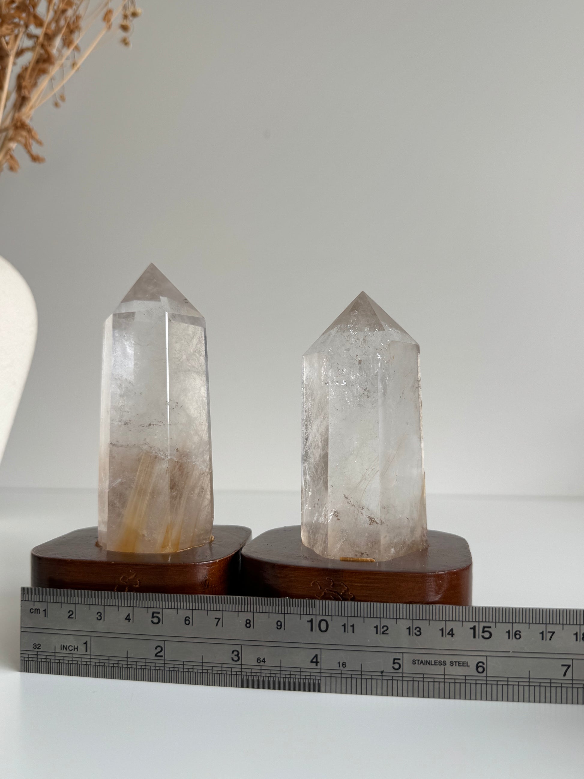 Each Rutile Quartz crystal is unique, with distinct needle-like inclusions that vary in color, pattern, and markings.