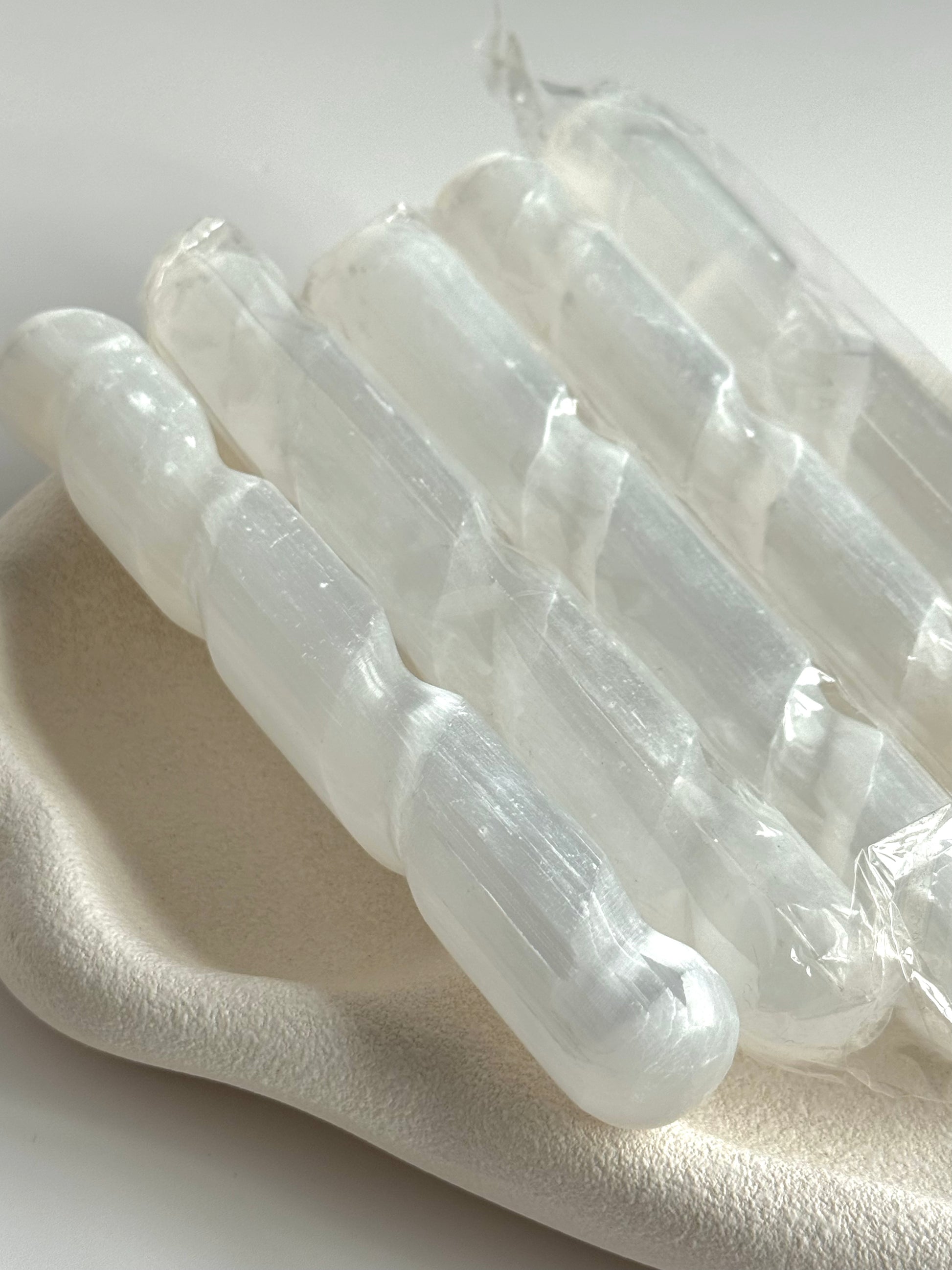 Selenite healing properties are all about activation and reaching higher planes. It is known for connecting to the third eye, crown,transpersonal and Etheric chakras. Through radiating light energy, it promotes purity and honesty. It can align the chakras and raise awareness to a higher plane.