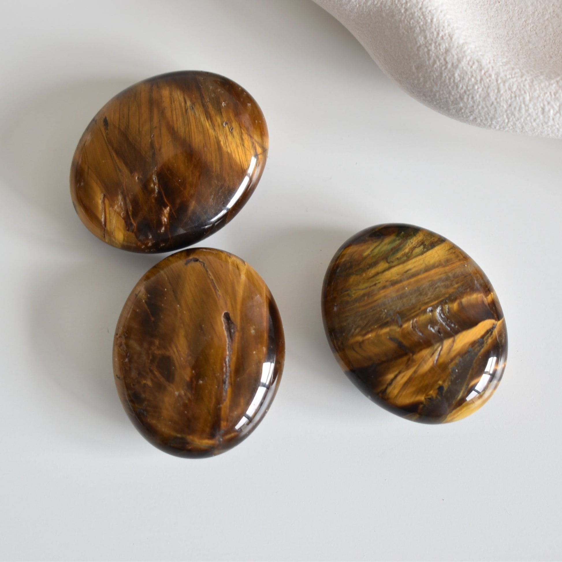 Yellow Tiger’s Eye is renowned for its warm golden hues and grounding yet energising vibrations. This palm stone embodies strength, personal power, and protection, helping to boost confidence and encourage positive action.